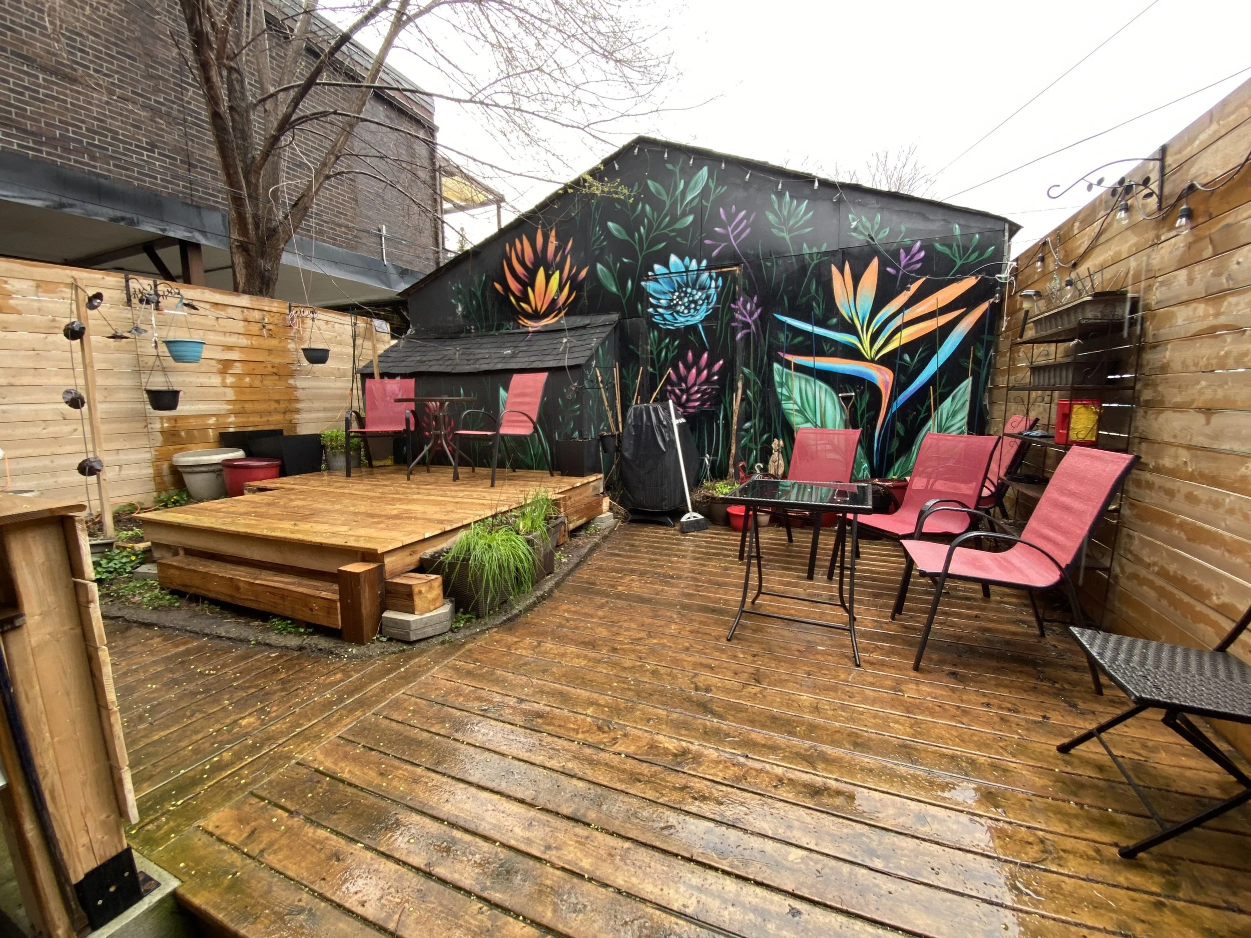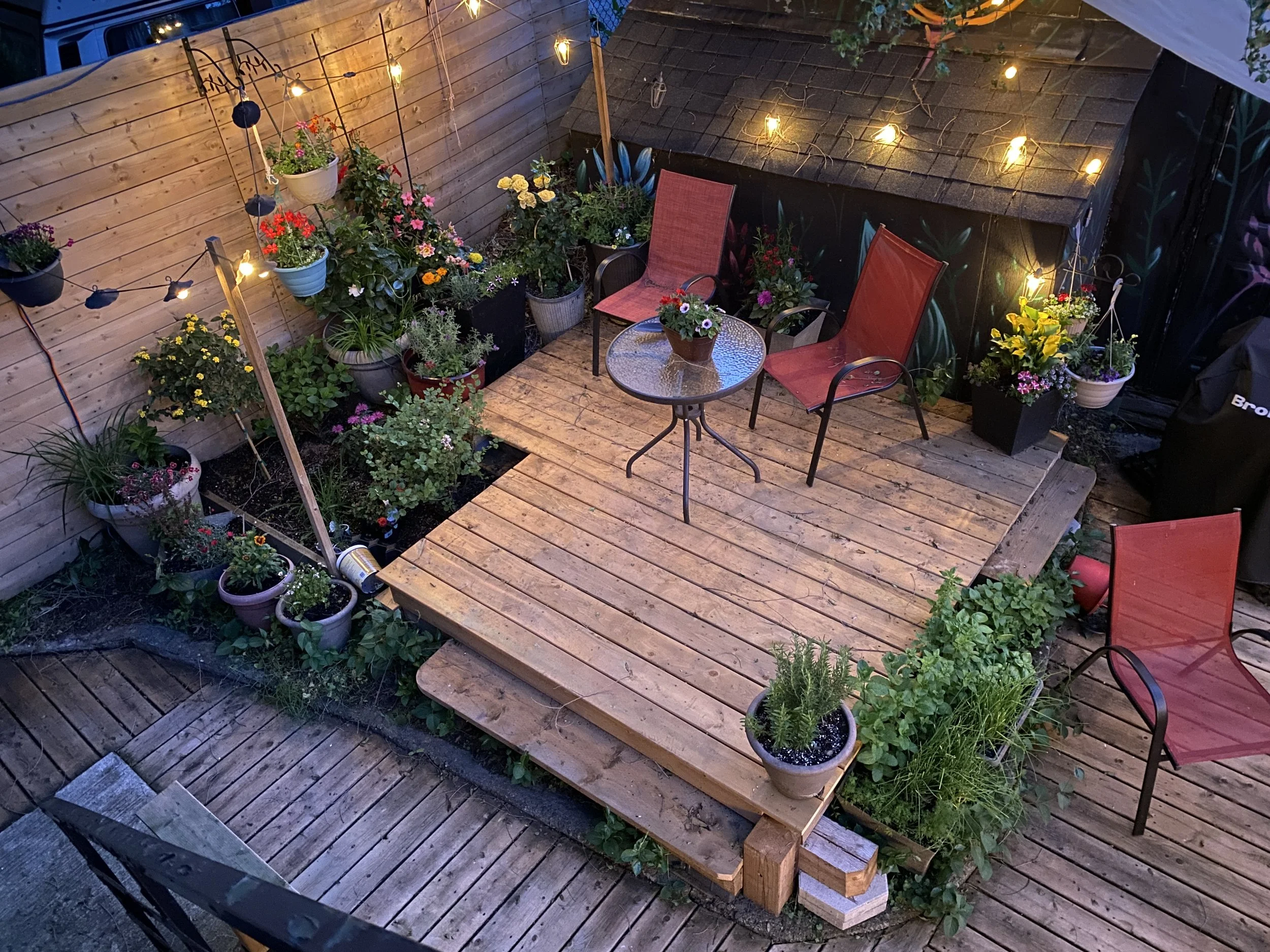 ❋ A beautiful back deck with gardenThe apartment entrance is off of the back deck. There is a garden, chairs and tables for you to enjoy.