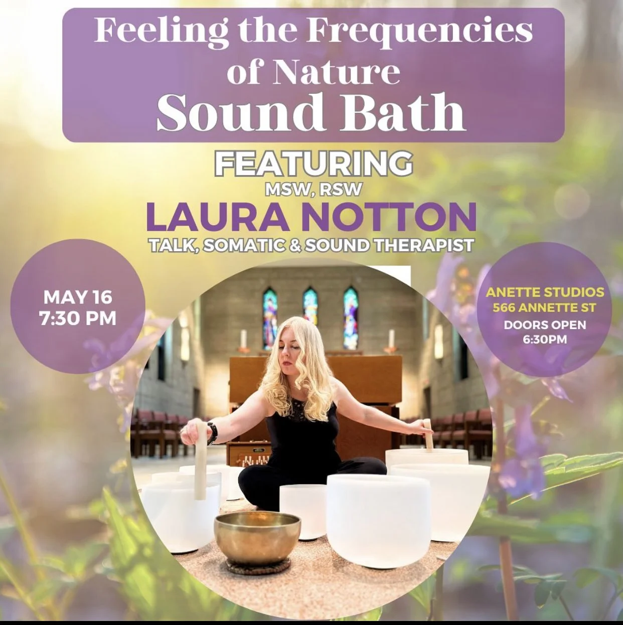 Back to All Events Feeling the Frequencies of Nature Sound Bath, with Laura Notton Thursday, May 16, 2024 6:30 PM 9:00 PM Google Calendar ICS